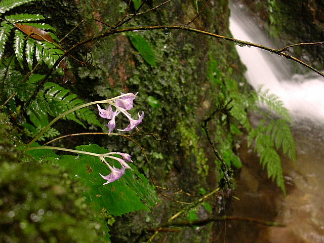 日和田山の裏側、こんな所に可愛い滝があるのです。スーパーGで探した里山歩き。意外な拾いものでした。静かな沢沿いの道のドンづまりにその滝はありました。イワタバコも咲いています。