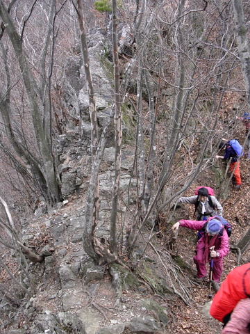 冬枯れの道は展望も良く快適な道のり。概して、尾根上は道もしっかりしていて歩きやすいのだが、油断をしていると、危ない箇所も出てくる。やはり低山でも油断大敵だ。